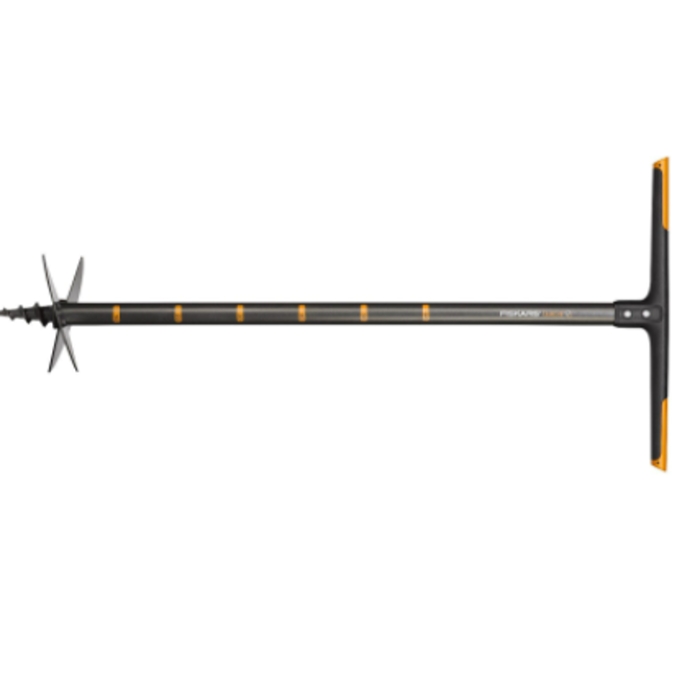 QuikDrill™ Fiskars není konstruován tradičním způsobem s dlouhou spirální šroubovicí ale má dvě optimálně nakloněné čepele z bórové oceli upevněné kolem ostrého hrotu. Tento design umožňuje pronikat i do tužších půd s menším odporem a brání mačkání země. Vyhazování vyvrtaného materiálu na úhlednou hromadu je snadné a otvor je brzy vyvrtán.