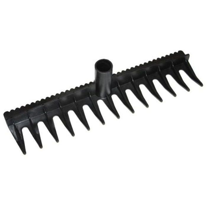 Hrábě celoplastové s urovnávací lištou bez násady. Vhodné pro jarní i celoroční práce na zahradě, slouží k rozmělnění zeminy, k úpravě záhonů (hrabání, udusání, úprava tvaru), k hrabání trávy, listí, vhodné i k ruční práci v zemědělství, časté použití k úpravě tenisových kurtů a golfových hřišť. Počet zubů: 13. Šířka: 38 cm .