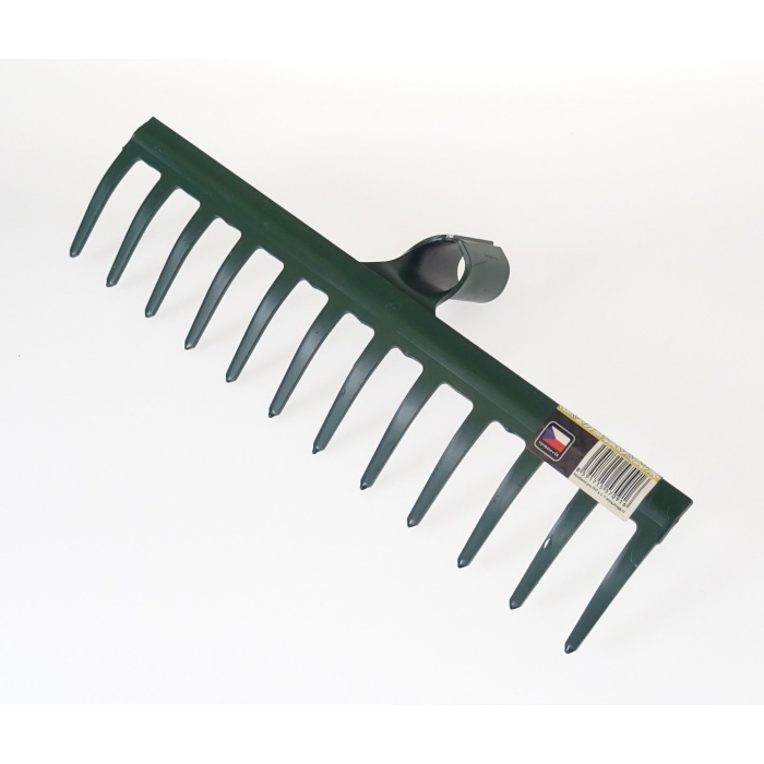 Hrábě kovové bez násady. Vhodné pro shrabování hrubšího smetí např. spadaného listí, uřezaných haluzí, sběru pokosené trávy a dále také urovnávání povrchu, k vyhrabání kořenů, oddenků a zbytků plevele na záhonech. Počet zubů: 12. Šířka: 29 cm.