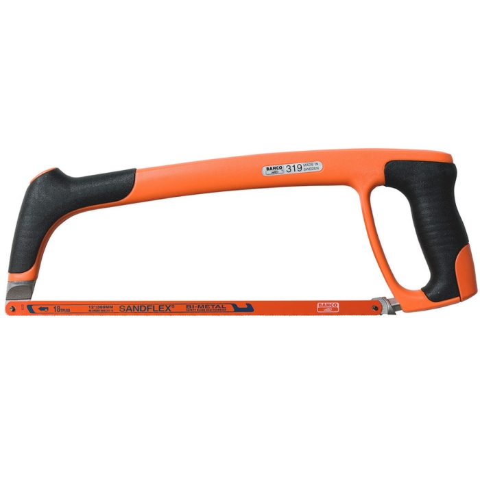 profesionálná rámová pila na kov, ergonomická rukojeť SOFT-GRIP, kovový profilový rám, upnutí pilového plátku pod úhlem 55°