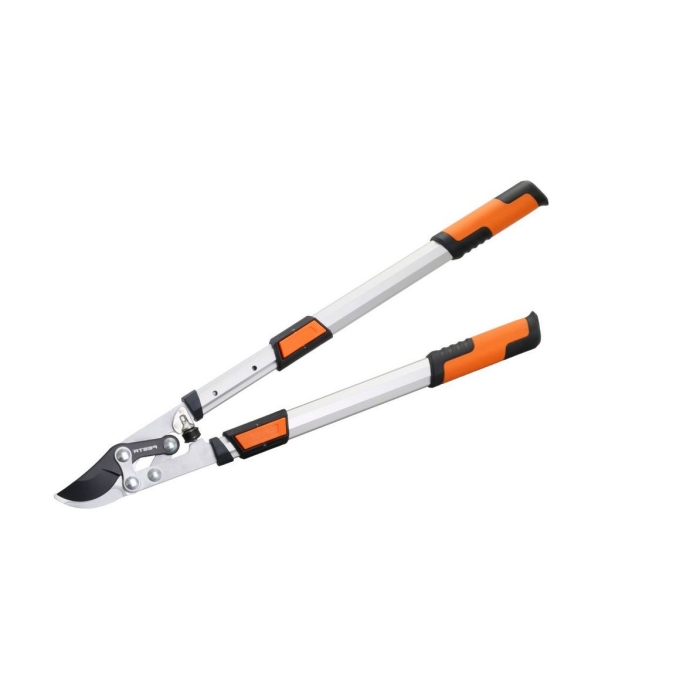 Zahradnické obouruční nůžky s teleskopickou rukojetí a převodovým střižným mechanismem. Nůžky jsou opatřeny vysoce kvalitní čepelí s nepřilnavým povrchem. Ergonomicky tvarované dvoukomponentní rukojeti a lehká, teleskopická hliníková ramena ulehčují práci.