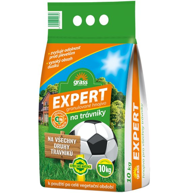 FORESTINA GRASS trávníkové hnojivo EXPERT 10 kgEXPERT je granulované hnojivo na trávníky obsahující základní živiny dusík, fosfor, draslík ve vyváženém poměru. Současně obsahuje hořčík v síranové formě. Toto hnojivo je vhodné ke hnojení všech typů trávníků, sportovních i okrasných.
