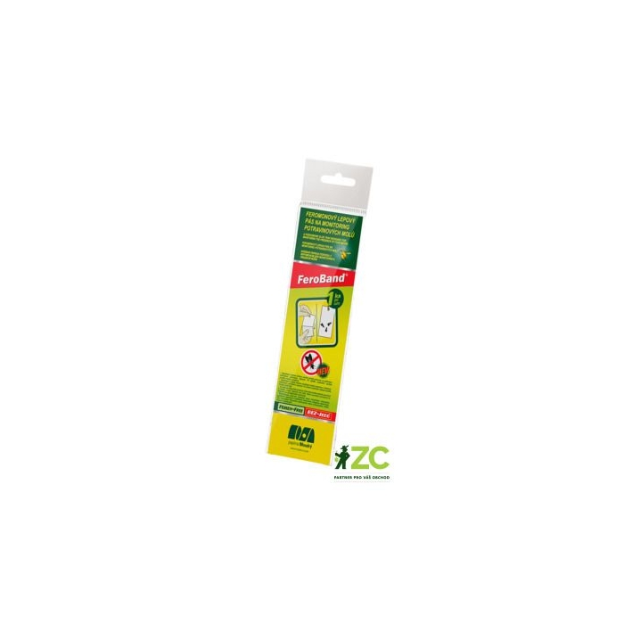 Jednostranně lepící papírový pás opatřený feromonem, který zaručuje účinný odchyt samců 4 druhů potravinových molů - zavíječe skladištního, moučného, datlového a paprikového.