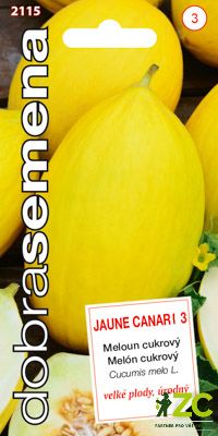 JAUNE CANARI 3 - cukrový meloun s velkými, oválnými plody s jasně žlutou slupkou a bělavou, výrazně sladkou dužinou. Plody jsou skladovatelné v řádu týdnů. Vyžaduje záhřevné polohy s jižní expozicí a humózní půdu s dostatkem živin. Je vhodný i pro pěstování ve fóliových krytech s přístupem hmyzích opylovačů.