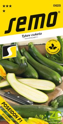 POSEIDON F1 SM (kód 0625) - raná hybridní odrůda cukety s delšími štíhlými plody, zachovávajícími tvar i při přerůstání. Hladký plod je středně zelený s mírně síťovanou strukturou. Sklízíme postupně, jakmile plody dosáhnou délky