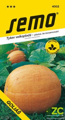 GOLIÁŠ (Cucurbita maxima Duch.) – plazivá rostlina mohutného vzrůstu s kulovitými až oválnými plody, ohnivě oranžové barvy s oranžovou jemnou, nasládlou dužninou silnou 3 – 5 cm. Plod dosahuje hmotnosti 20 - 50 kg. Odrůda je určená pro jednorázovou sklizeň v botanické zralosti. Spon 200 x 100 cm. Plody jsou vhodné pro přímý konzum, kuchyňskou úpravu, konzervaci kompotováním, na džemy i jako krmivo pro domácí zvířata. Nejvhodnější odrůda na zavařování. Tuto odrůdu nabízíme také v BIO kvalitě!