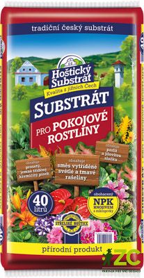 HOŠTICKÝ SUBSTRÁT PRO POKOJOVÉ ROSTLINY je vyroben ze směsi vytříděné světlé a tmavé rašeliny, prosetého jemně tříděného křemičitého písku, perlitu, přírodní jílovité složky a minerálního vícesložkového hnojiva s mikroprvky. Půdní reakce je upravena jemně mletým dolomitickým vápencem.