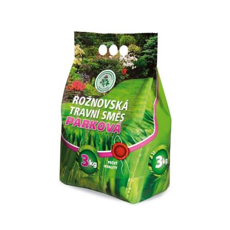 PARKOVÁ SMĚS ROŽNOVSKÁ je vhodná pro zatravnění zahrad, parků, sídlišť a jiné městské zeleně. Vytváří plně zapojený okrasný trávník, snáší sešlapávání, po zasetí rychle vzchází a zachovává stálou barvu po celý rok. Nevyžaduje intenzivní ošetřování. Základ směsi tvoří jílek vytrvalý, kostřava červená a poháňka hřebenitá. Je složená z druhů a odrůd nižšího vzrůstu s menší tvorbou zelené hmoty. Vytváří plně zapojený okrasný trávník. Je vhodná k vysetí ve středních a vyšších polohách s prům. klimatickými a půdními podmínkami s možností středně intenzívní údržby. Tuto směs doporučujeme pro obnovu zeleně našich měst, parků a zahrad. Doporučený výsev: 2-2,5 kg/ 100 m čtverečných.