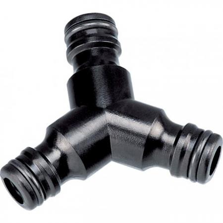 Třícestná spojka slouží k propojení tří libovolných hadic za pomocí tří rychlospojek se systémem Quick - click (je korozivzdorná - bez kovových částí a nárazuvzdorná, odolná UV záření a vysokému tlaku - více jak 40 barů).