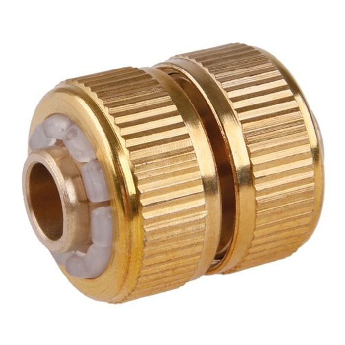 Mosazná spojka pro zahradní hadice. Lehká konstrukce z kvalitní mosazi odolávající rezivění. Spojka je opatřena dvěma maticemi pro pevné spojení bez použití dalšího nářadí.