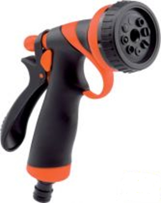 Víceúčelová postřikovací pistole s ergonomickým držadlem, se sedmi druhy nastavení rozstřiku (sprcha, perlátor, mlžítko, proud atd.). S regulací přítoku vody se skvělým designem a funkční zdatností. Baleno v blistru.