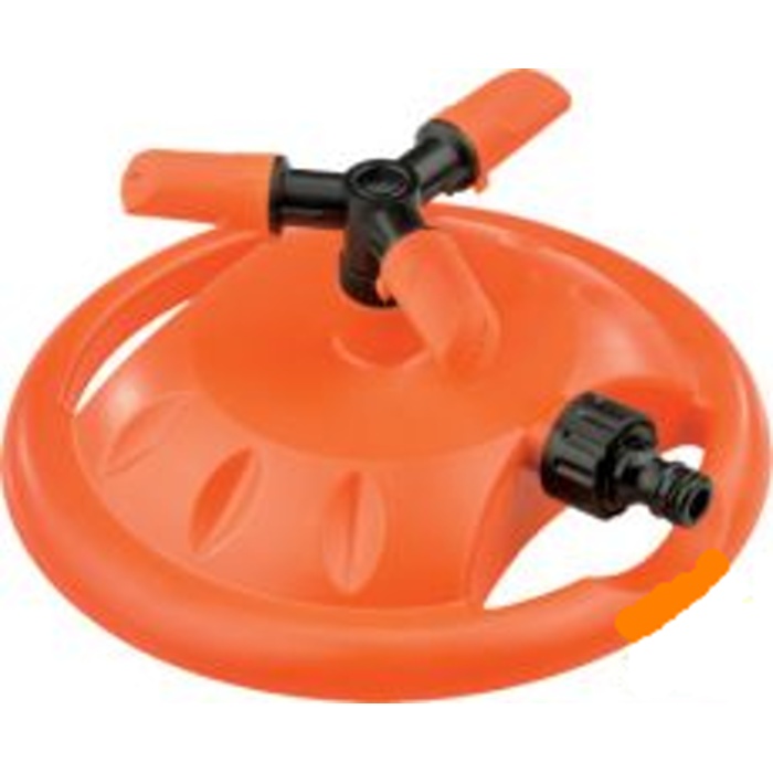Tříramínkový rotační trávníkový zavlažovač s velkým podstavcem a nastavitelnými kropícími tryskami pro kropení trávníku, záhonů, keřů atd. Vhodné pro malé a střední plochy. Vyroben z kvalitního ABS plastu. Maximální průměr zavlažovací plochy 15 m.