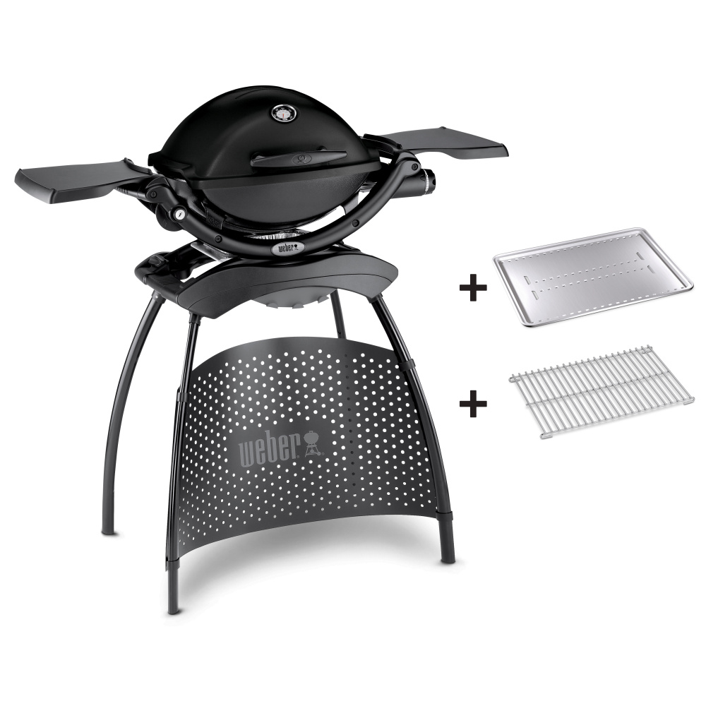 Hledáte vychytaný plynový gril v moderním hávu navíc s podpěrným stojanem? Pak jste kápli na ten pravý. Weber gril Q 1200 Stand je vyroben z vysoce odolné hliníkové slitiny a od klasického modelu Q 1200 se liší bytelným stojanem, do kterého je gril vsazen. Můžete tak říct své sbohem stolku nebo jinému podkladu, který jste při grilování používali. Teď už si vystačíte jen se samotným grilem. Na stojanu jsou také tři háčky na zavěšení grilovacího náčiní. Pro přípravu masa a jiných potravin je vám k dispozici dvoudílný porcelánem smaltovaný litinový rošt o rozměru 43 x 32 centimetrů a s elektrickým zapalováním. Díky velké topné spirále se žár rozprostírá rovnoměrně celým prostorem grilu.