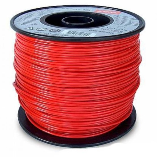 Čtyřhranná žací struna, průměr 2,7 mm, délka 358 m, červená, vyrobena z odolného a elastického materiálu.