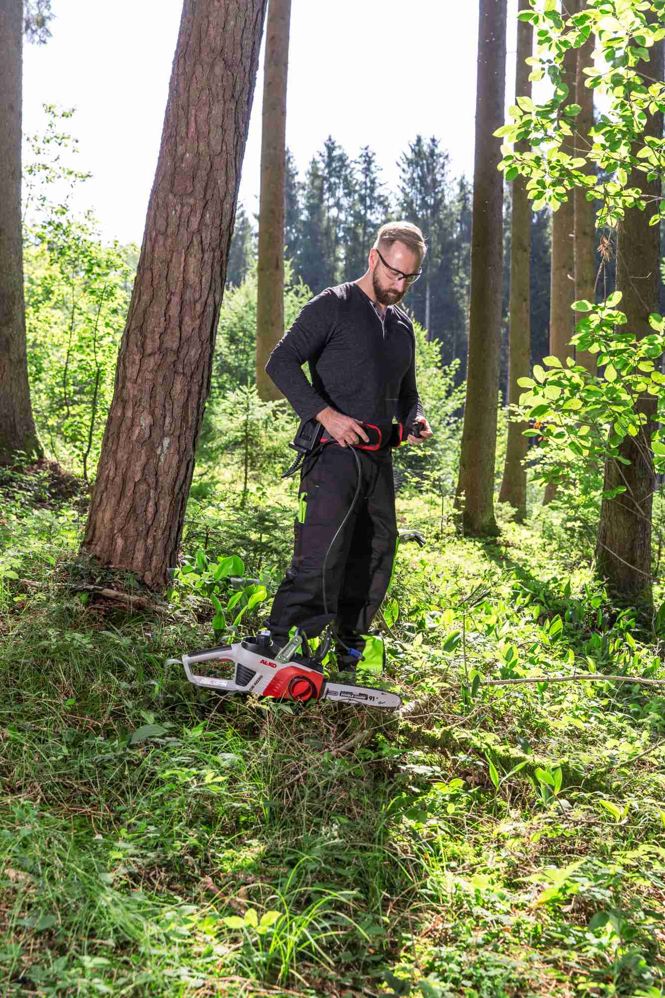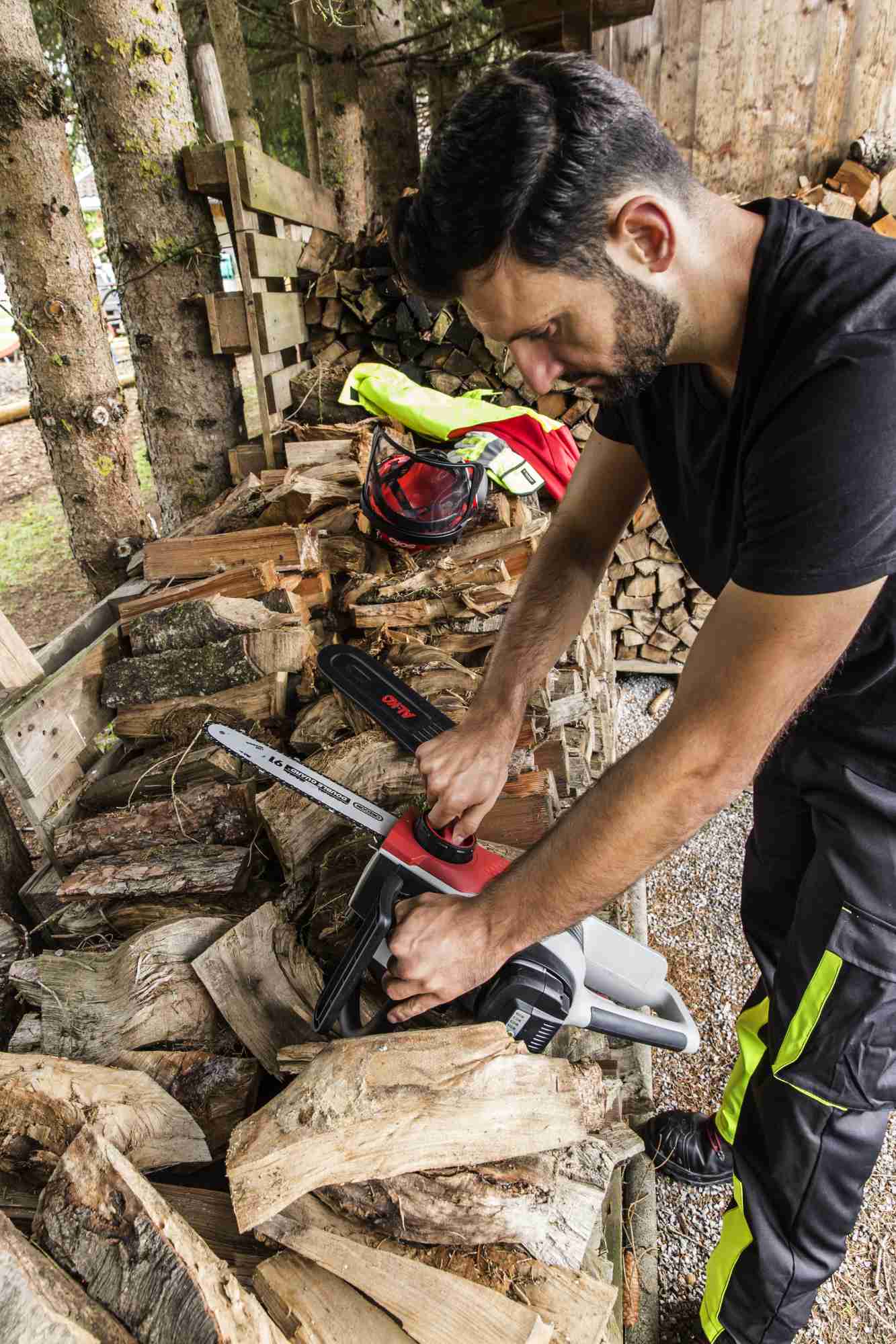 Tato akumulátorová řetězová pila vás okouzlí svým štíhlým tvarem, nekompromisní výbavou a bezkabelovým napájením z akumulátoru Li-Ion bez emisí.